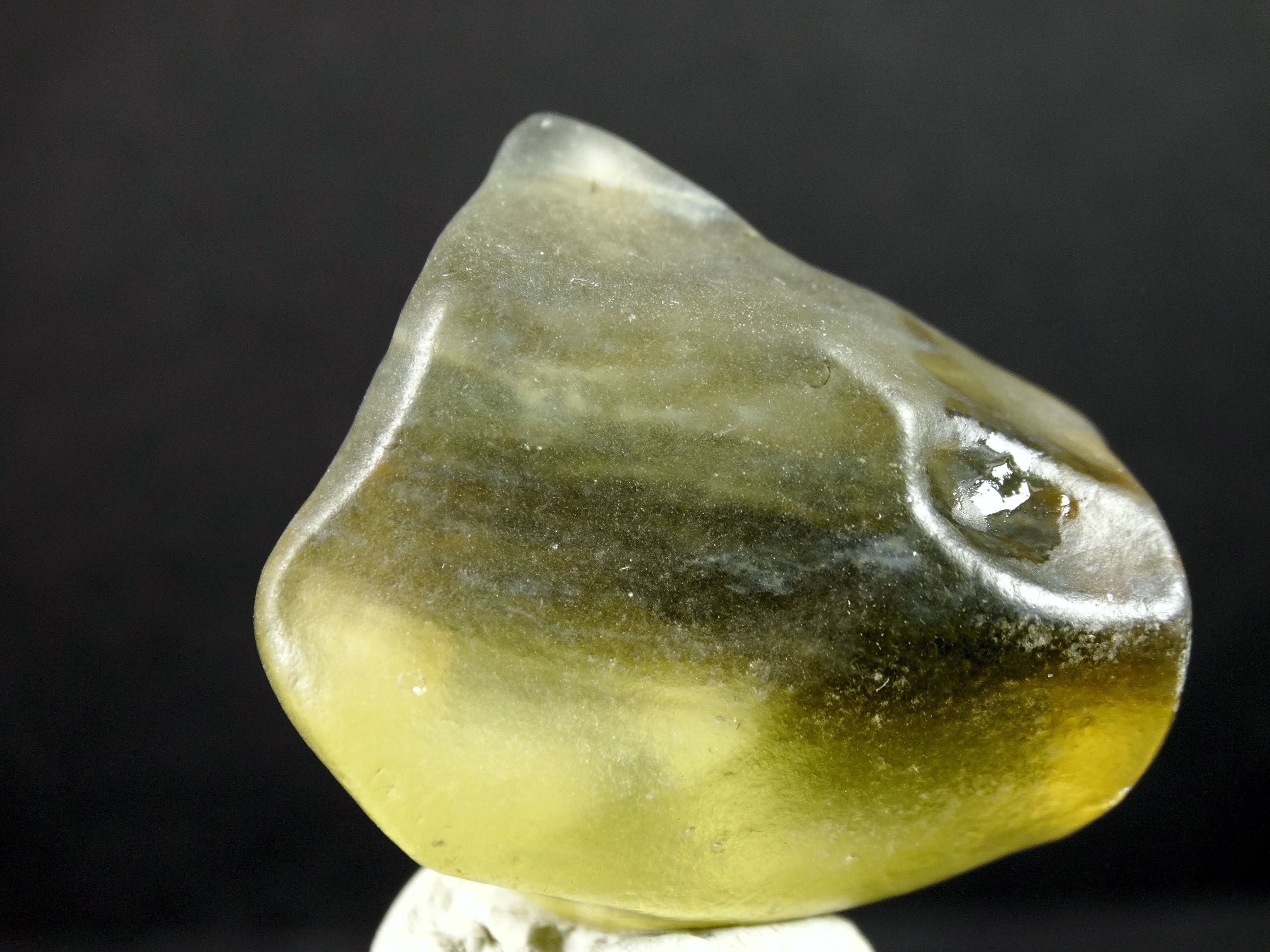přítomnost lechatelieritu, tj. přetaveného křemene, jehož vznik vyžaduje