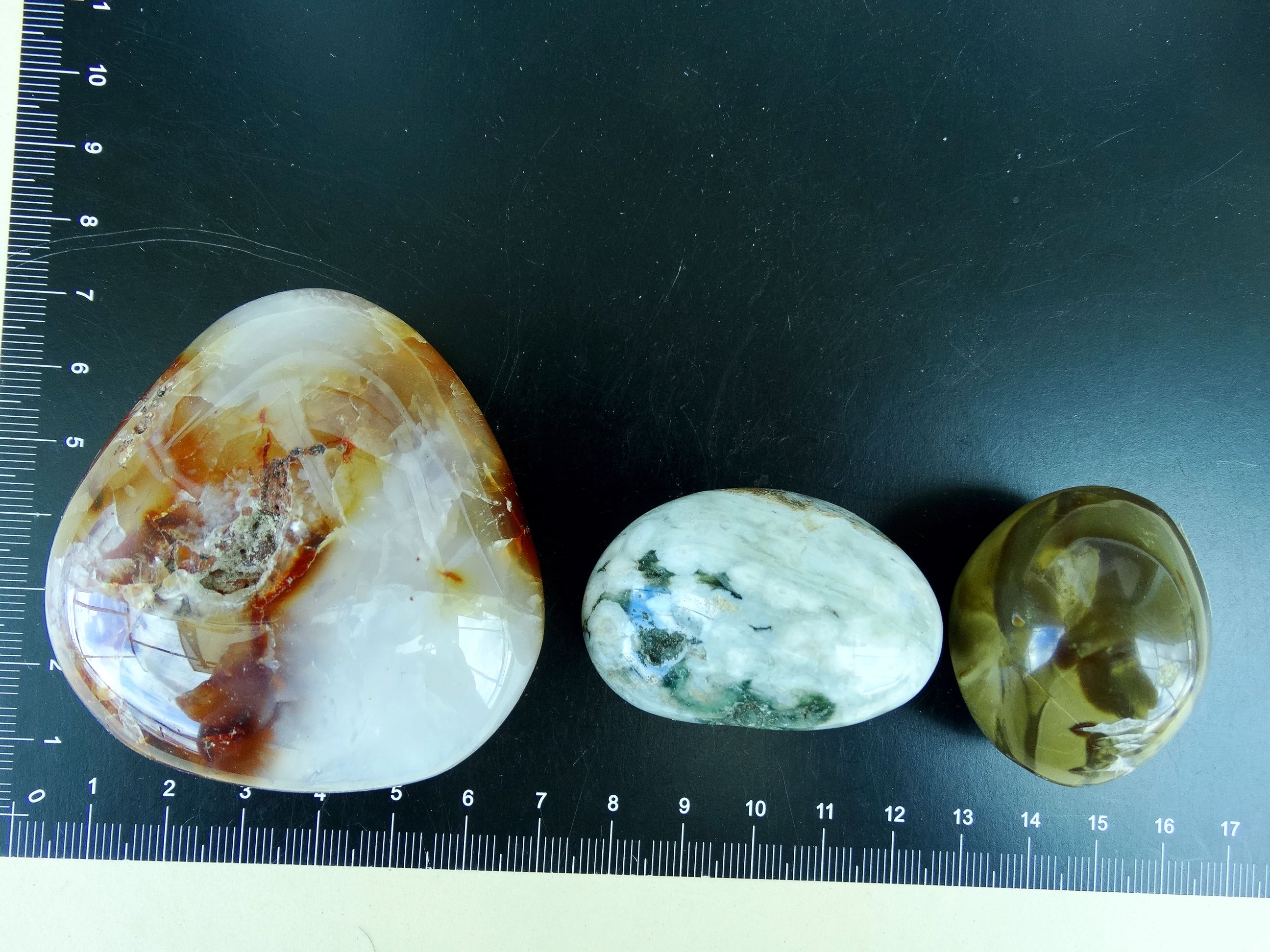 Kameny – převážně červených a zemitě hnědých barev (např. rubín,